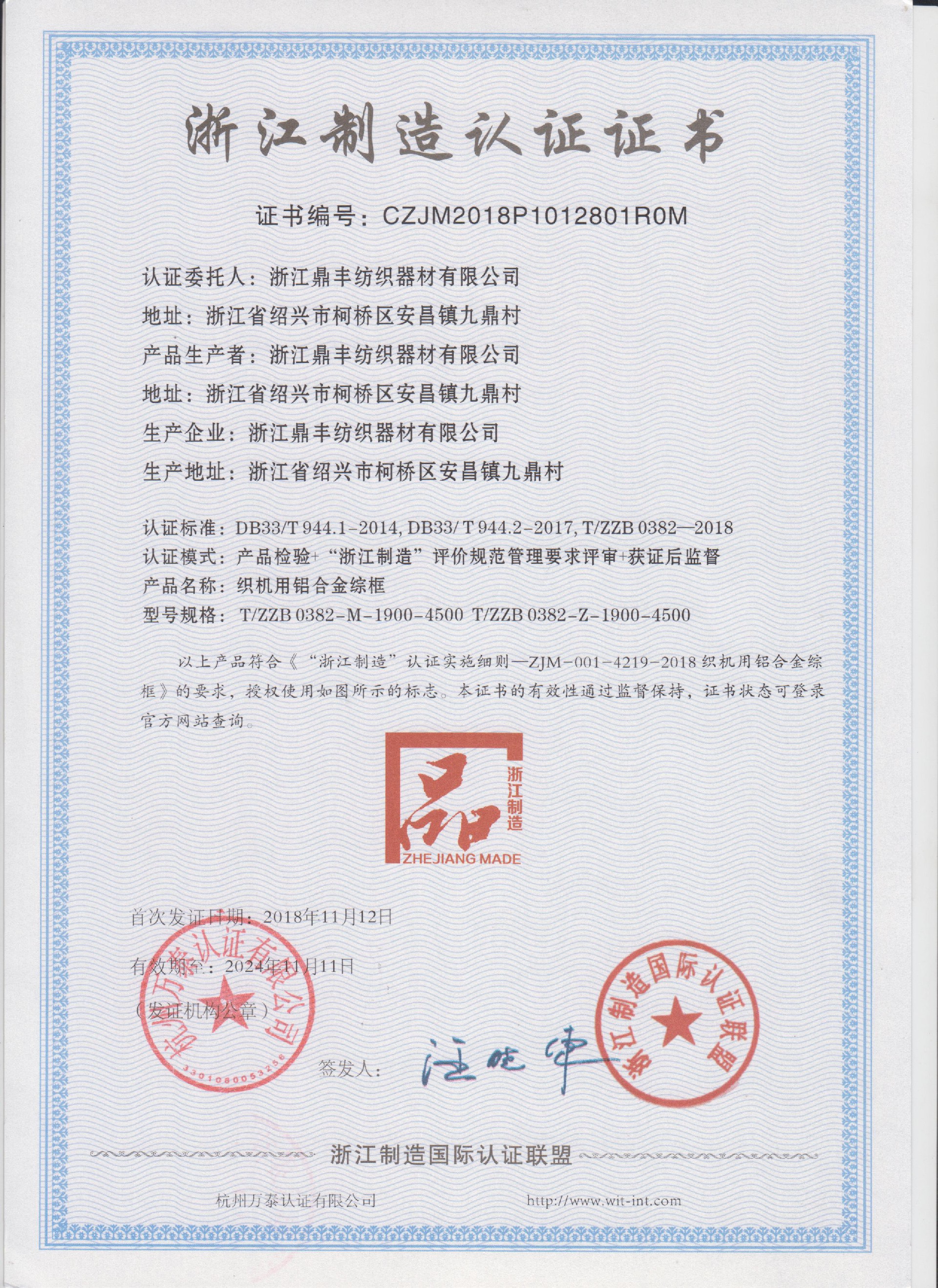 1、貴公司是一家專業(yè)生產(chǎn)各類無梭織機鋁合金鋼筘、綜框、鋼片綜、停經(jīng)片、經(jīng)軸、織軸和卷布輥等產(chǎn)品及配件的民營企業(yè)。公司成立30多年迅速發(fā)展、占領市場的秘決是什么?余定雅:是高品質的產(chǎn)品,完善的售后服務和大規(guī)模的生產(chǎn)能力保證了浙江鼎豐紡織器材有限公司的產(chǎn)品銷售量在國內(nèi)獨占鰲頭。為了與全球市場經(jīng)濟接軌,鼎豐紡
